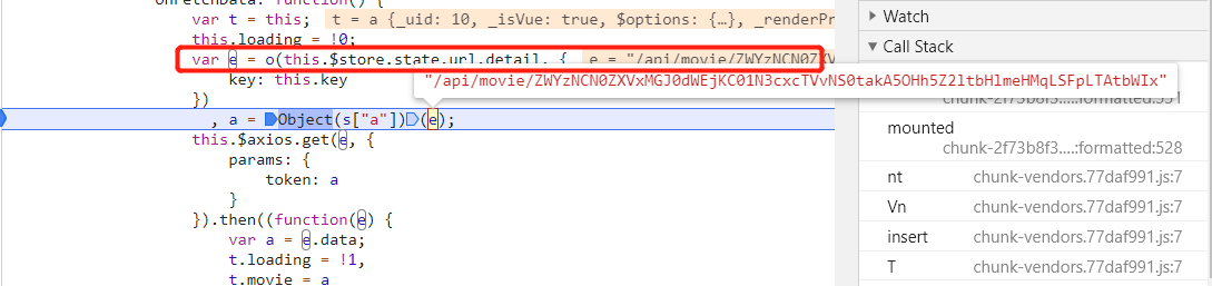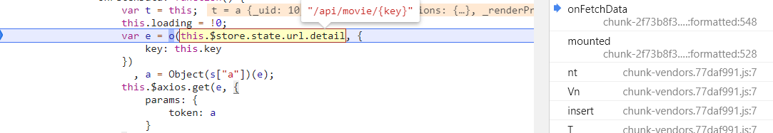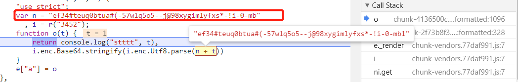 断下,但是看样子 o 函数只是格式化了 key 参数,key 是在之前就计算好了,这里并没有计算 key 的流程,看了下其他的调用栈,应该是 vue 被混淆之后的样子,太乱了,此路不通,换条路走。