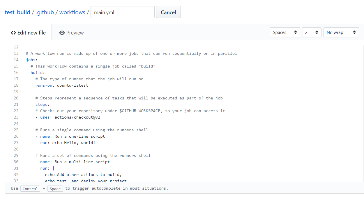 左边为 yml 文件,文件名可以自定义,Github 会自动运行其中定义的 job。